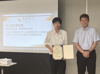 電気・電子情報工学専攻 博士前期課程 2年 岡田篤哉 さんが 令和6年度電子情報通信学会 センサネットワークとモバイルインテリジェンス(SeMI)研究会において若手研究奨励賞 を受賞しました。(受賞日:2025年7月31日)